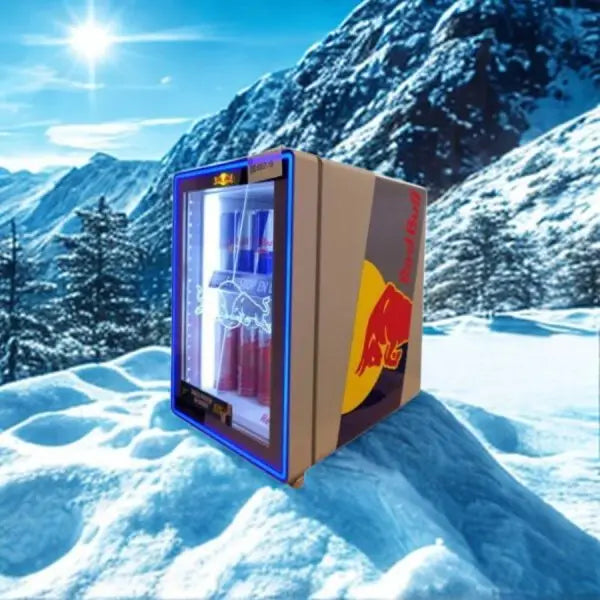 Slutt å lete i hovedkjøleskapet. Med dette Red Bull mini-kjøleskapet er hver boks lett tilgjengelig, kald og klar til å gi deg energi.